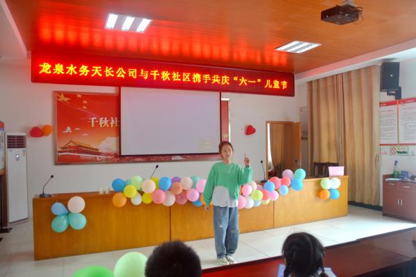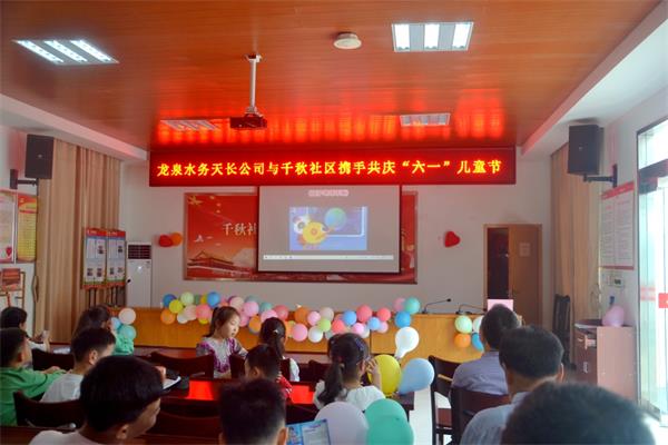 當天,龍泉水務公司職工和社區職工帶著自家的小朋友們50余人,興高采烈地聚集到千秋社區。社區的會議室里點綴著五顏六色的氣球,小朋友們快樂嬉戲,呈現出一片其樂融融的節日氛圍。活動現場,首先開展環保知識宣傳,教育小朋友們從身邊的小事做起,從現在做起,從我做起,爭做環保小衛士。針對暑期為溺水事故高發期,期間還通過觀看視頻開展了防溺水知識宣傳,增強家長和小朋友們防溺水知識,杜絕溺水事件發生,確保青少年安全、健康成長。最為激動人心的是小朋友們的才藝表演精彩紛呈。小朋友們爭先恐后地展示了尤克里里、快板、獨唱、手指舞等各項文藝節目,將活動推向高潮,贏得陣陣熱烈的掌聲。活動還向小朋友們送上了由龍泉水務、千秋街道及千秋社區為他們準備的書籍、學習用品、節日蛋糕等賀禮和節日祝福。收到賀禮的小朋友們都十分開心,連聲表示感謝。