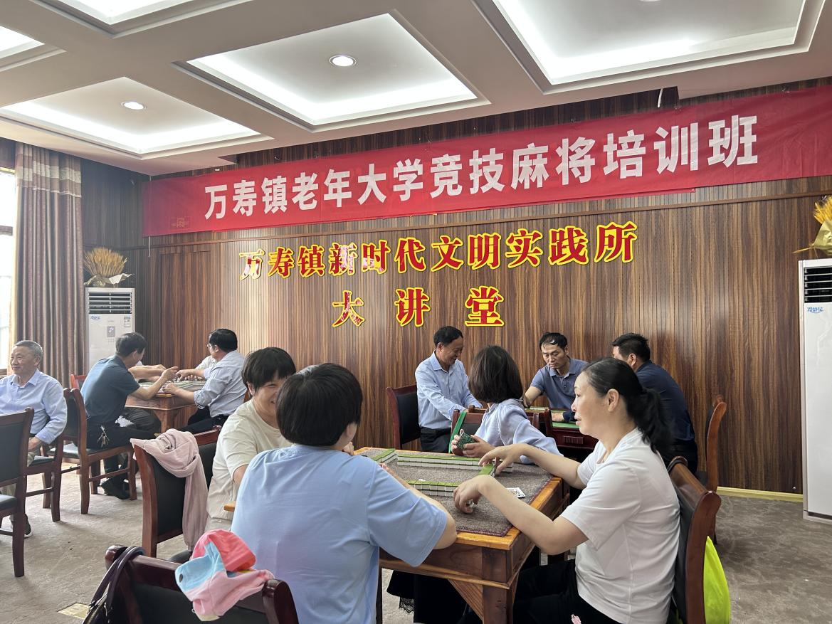為了加強老年學員的聯系,豐富老年學員的業余文化生活,萬壽鎮老年大學開展競技麻將培訓班,引導老年學員健康娛樂,營造老有所樂、老有所學、健康向上的精神風貌。