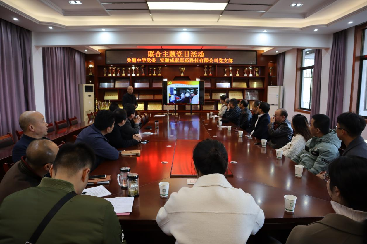 近日,關塘中學黨委與安徽成泰醫藥科技有限公司黨支部(簡稱“成泰醫藥黨支部”)開展校企聯學共建活動。雙方深入學習宣傳貫徹黨的二十大精神,堅定不移聽黨話、跟黨走,堅定理想信念,探索校企共建、工作互助、問題共解的新路徑和新方法。雙方秉承“合作共贏,雙向互濟”的理念,常態化開展校企聯動共建,切實深化合作共享資源平臺,把黨建經驗成果轉化成促進發展的動力。
