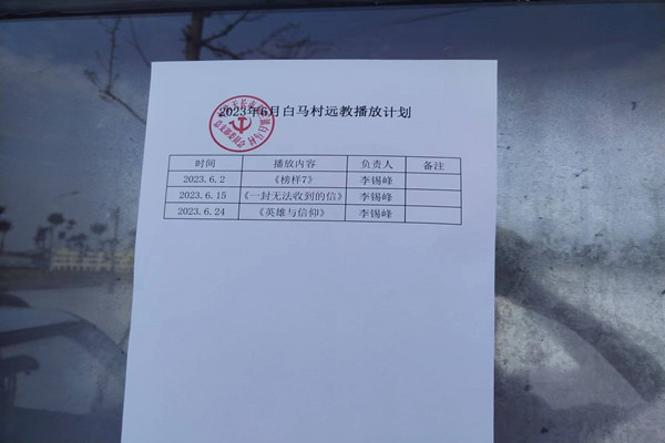 2023年6月2日,白馬村制定6月份黨員遠程教育播放計劃并進行公示。