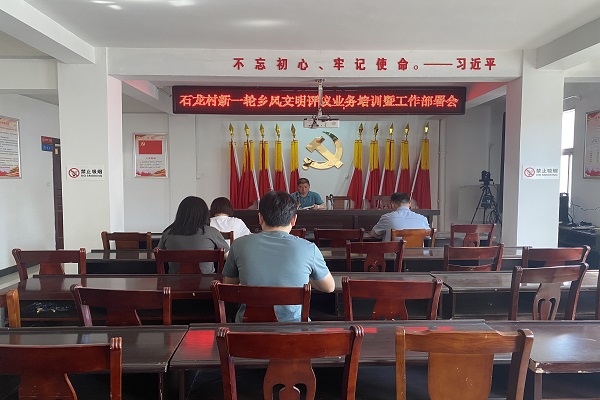 2023年6月10日,石龍村村“兩委”組織召開新一輪鄉風文明評議業務培訓暨工作部署會,會議首先傳達省黨建引領信用村建設工作聯席會議《關于印發〈推行“黨建+信用”開展黨建引領信用村建設工作方案〉的通知》精神,以及石梁鎮關于開展新一輪鄉風文明評議的通知,再由黨建工作者對這一輪鄉風文明評議基本內容、正面清單、負面清單及“一票否決”清單具體業務進行培訓。