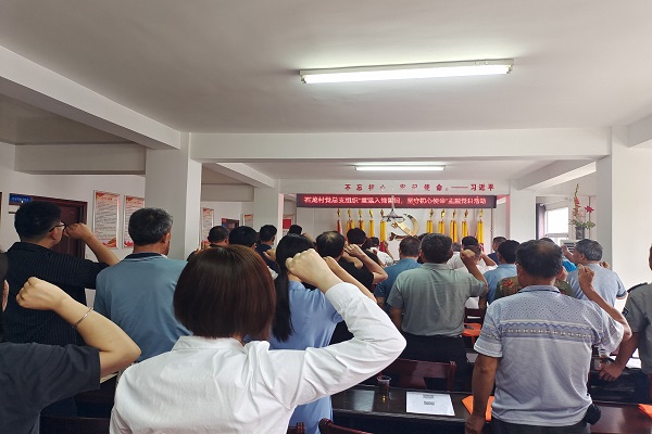 在鏗鏘有力,氣勢磅礴的國歌聲中,石龍村慶祝七一主題活動隆重開幕。系列活動首先開展“重溫入黨誓詞,堅守初心使命”重溫入黨誓詞活動,黨員同志們目光堅定、神情肅穆,宣誓鏗鏘有力。入黨誓詞絕不是空口之談,而是要將其作為自我要求的標準去踐行,這種莊重的宣誓儀式,對全體黨員也是一次難忘的黨性教育。