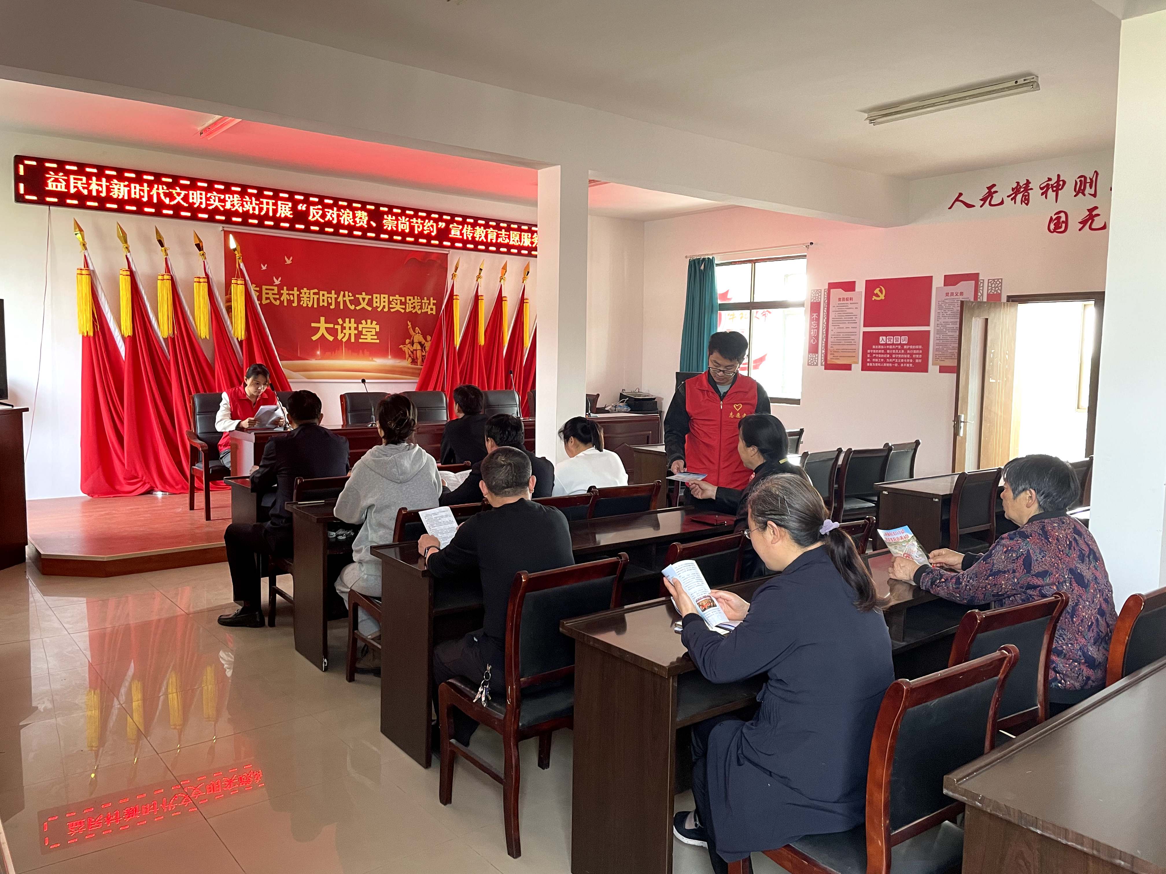 為深入學(xué)習(xí)宣傳貫徹黨的二十大精神,認(rèn)真落實(shí)習(xí)近平總書記關(guān)于制止餐飲浪費(fèi)的重要指示批示精神,引導(dǎo)廣大群眾養(yǎng)成勤儉節(jié)約的良好習(xí)慣,弘揚(yáng)中華民族勤儉節(jié)約的傳統(tǒng)美德,近日,益民村新時(shí)代文明實(shí)踐站組織開展了“反對(duì)浪費(fèi) 崇尚節(jié)約”宣傳教育志愿服務(wù)活動(dòng)。