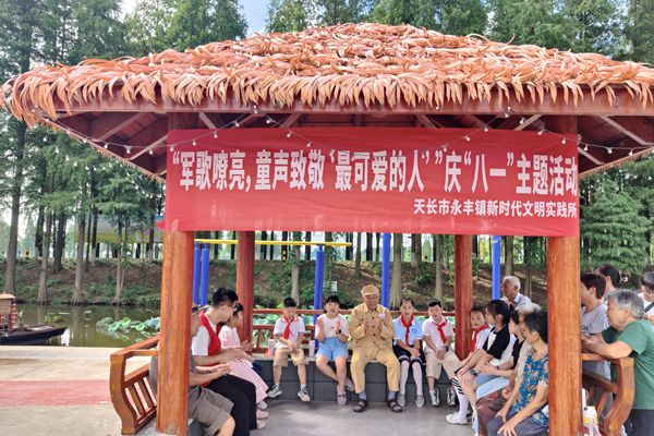 “我們的隊伍像太陽,腳踏著祖國的大地,背負著民族的希望,我們是一支不可戰勝的力量。我們是工農的子弟,我們是人民的武裝,從無畏懼,絕不屈服,英勇戰斗……”8月1日上午,天長市永豐鎮三元村新建組的涼亭里軍歌嘹亮,來自永豐鎮“五彩夏日”暑托班的孩子們用充滿活力與希望的童聲唱響經典軍歌,致敬“最可愛的人”。