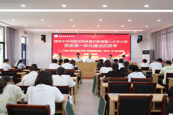 壓實政治責任,把穩思想之舵。校黨支部堅持把政治建設放在首位,集中專題研討《鑄牢中華民族共同體意識教育融入大中小學思政課一體化建設的思考》,深入學習貫徹習近平新時代中國特色社會主義思想和黨的二十大精神,堅持讀原著、學原文、悟原理,確保全體黨員思想上更加統一、政治上更加堅定、行動上更加一致。