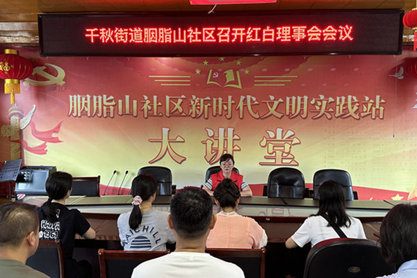 為了促進文明實踐活動在基層廣泛開展,助力鄉風文明,2023年8月24日上午,千秋街道胭脂山社區召開紅白理事會會議。