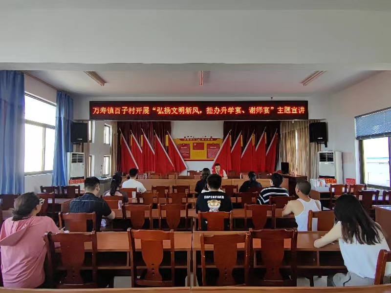 為切實弘揚新風正氣,革除舊習陋規,營造良好的社會氛圍。2023年8月4日,百子村新時代文明實踐站開展“弘揚文明新風,拒辦升學宴、謝師宴”主題宣講活動。