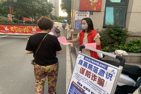 活動中,長泰社區(qū)工作人員通過發(fā)放宣傳手冊、宣傳展板等方式,結(jié)合近年來頻發(fā)、高發(fā)的電信網(wǎng)絡詐騙典型案例,向居民們揭露詐騙分子的套路和嚴重危害。提醒居民朋友要時刻緊繃防電信詐騙這根弦,不輕信來歷不明的電話、短信,不向陌生人匯款、轉(zhuǎn)賬。
