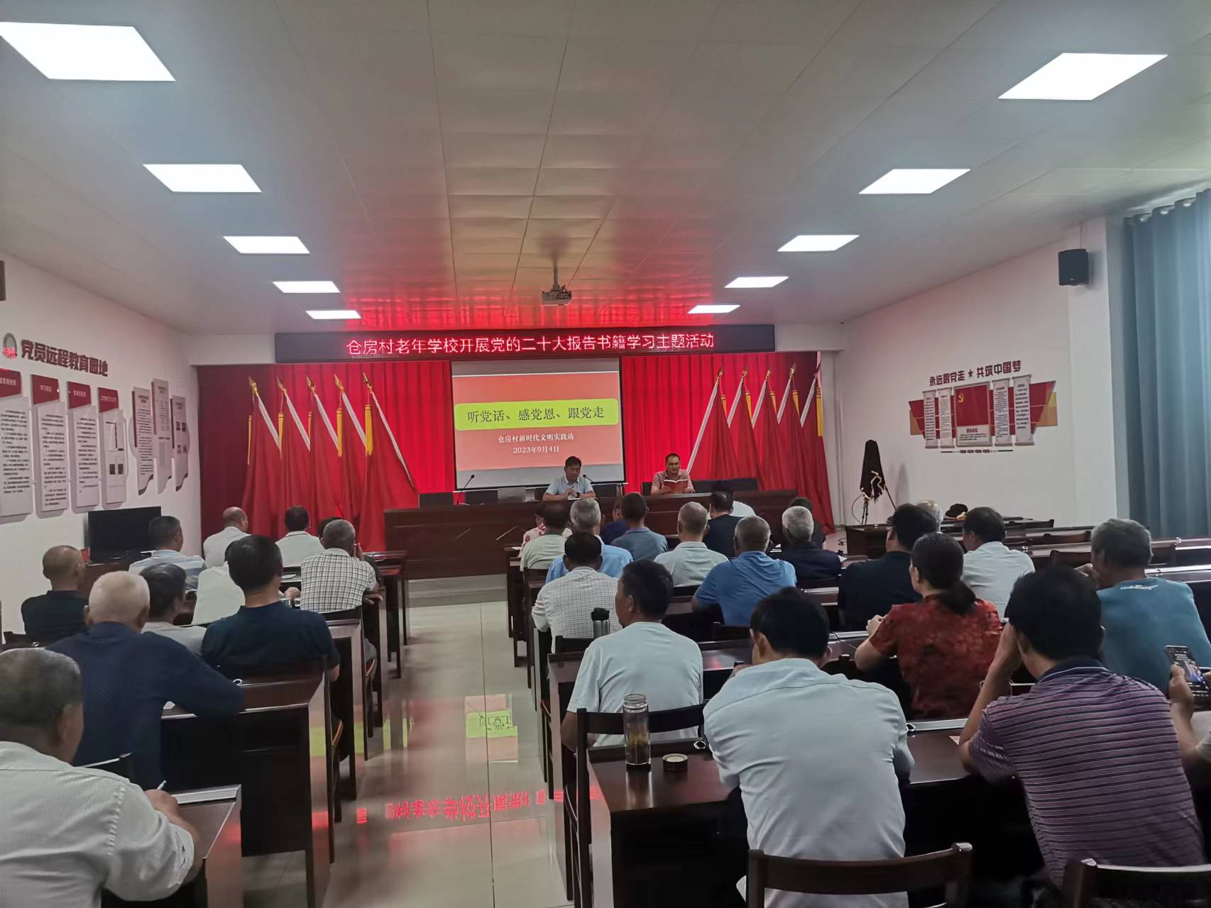 為深入學習宣傳貫徹黨的二十大精神結合倉房村老年學校開班儀式,倉房村老年學校開展黨的二十大報告書籍學習主題活動,村主要負責人帶領大家學習了黨的二十大報告輔導讀本,強調“深入學習貫徹黨的二十大精神,努力在積極應對老齡化的國家戰略上有更大作為”。村兩委成員、全體學員共80余人參加學習。