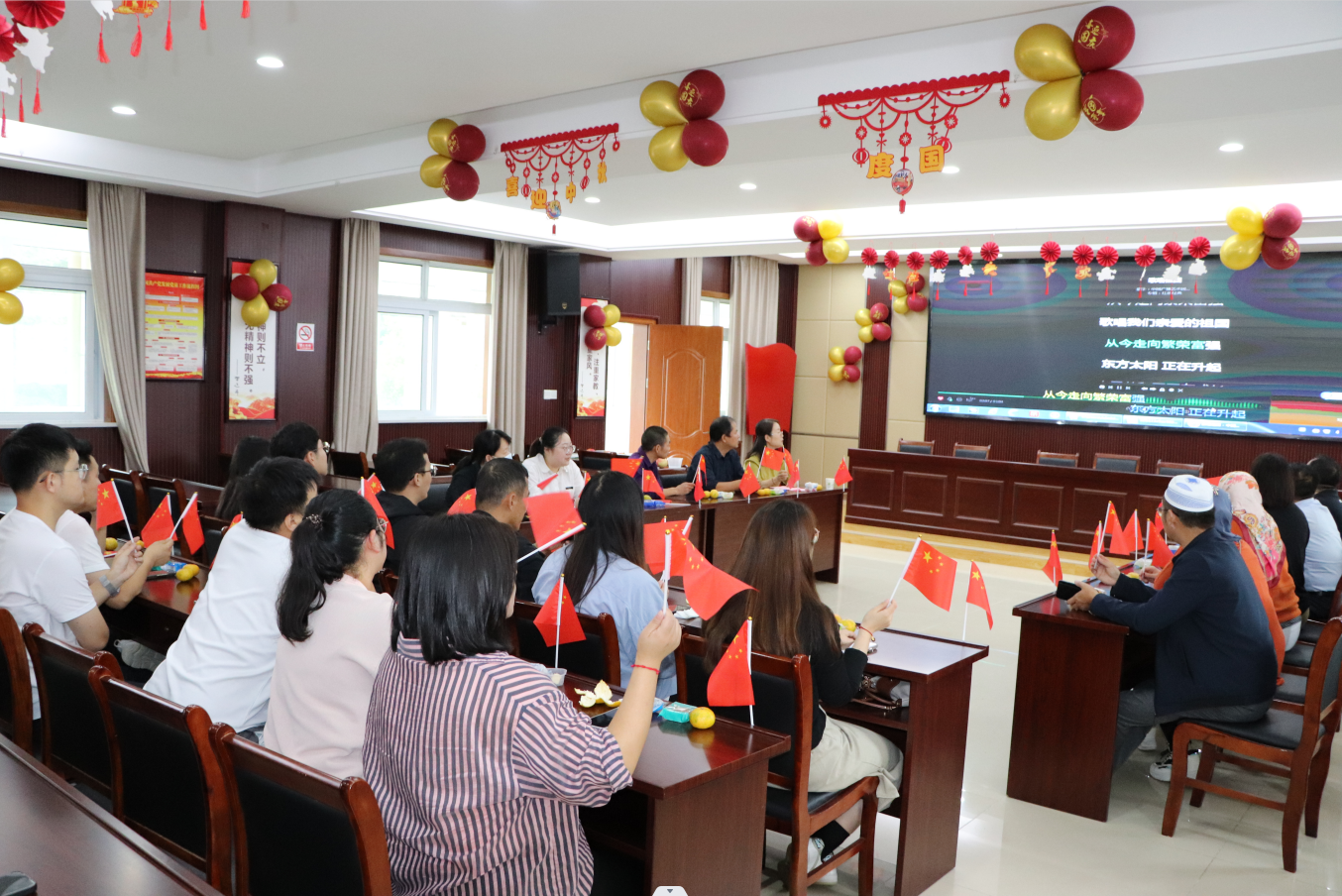 活動第二個環節由聯合黨委成員單位代表、社區工作人員、居民代表、志愿者代表、少數民族代表,一起合唱紅歌《歌唱祖國》《我和我的祖國》等紅色歌曲,通過合唱紅歌抒發對祖國的熱愛,對美好時代的贊頌,充分表達了大家對祖國的美好祝福。