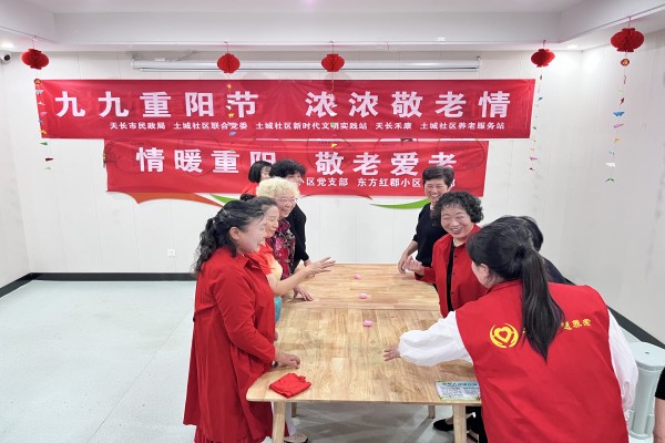 天朗氣清秋風(fēng)爽,年年歲歲又重陽。在重陽佳節(jié)來臨之際,為慶祝中華民族傳統(tǒng)節(jié)日,弘揚尊老、愛老、敬老的傳統(tǒng)美德,豐富老年群眾的精神文化生活,讓老年群眾深切感受到社區(qū)的溫暖和關(guān)懷。土城社區(qū)明珠城小區(qū)黨支部和東方紅郡小區(qū)黨支部在土城社區(qū)養(yǎng)老服務(wù)中心開展了“情暖重陽 敬老愛老”活動。