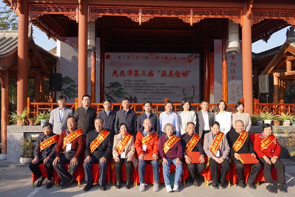 2023年10月23日,由天長市民政局主辦,天長市教體局和大通鎮人民政府承辦的天長市第三屆“最美金婚”頒獎典禮暨九九重陽民俗文化節活動,在大通鎮馮安村毛莊灣生態康養中心舉行,天長市各鎮街選送的99對老人共同參加此次活動,老人們在眾人的祝福與見證下,一同重溫了50年的經典與浪漫。