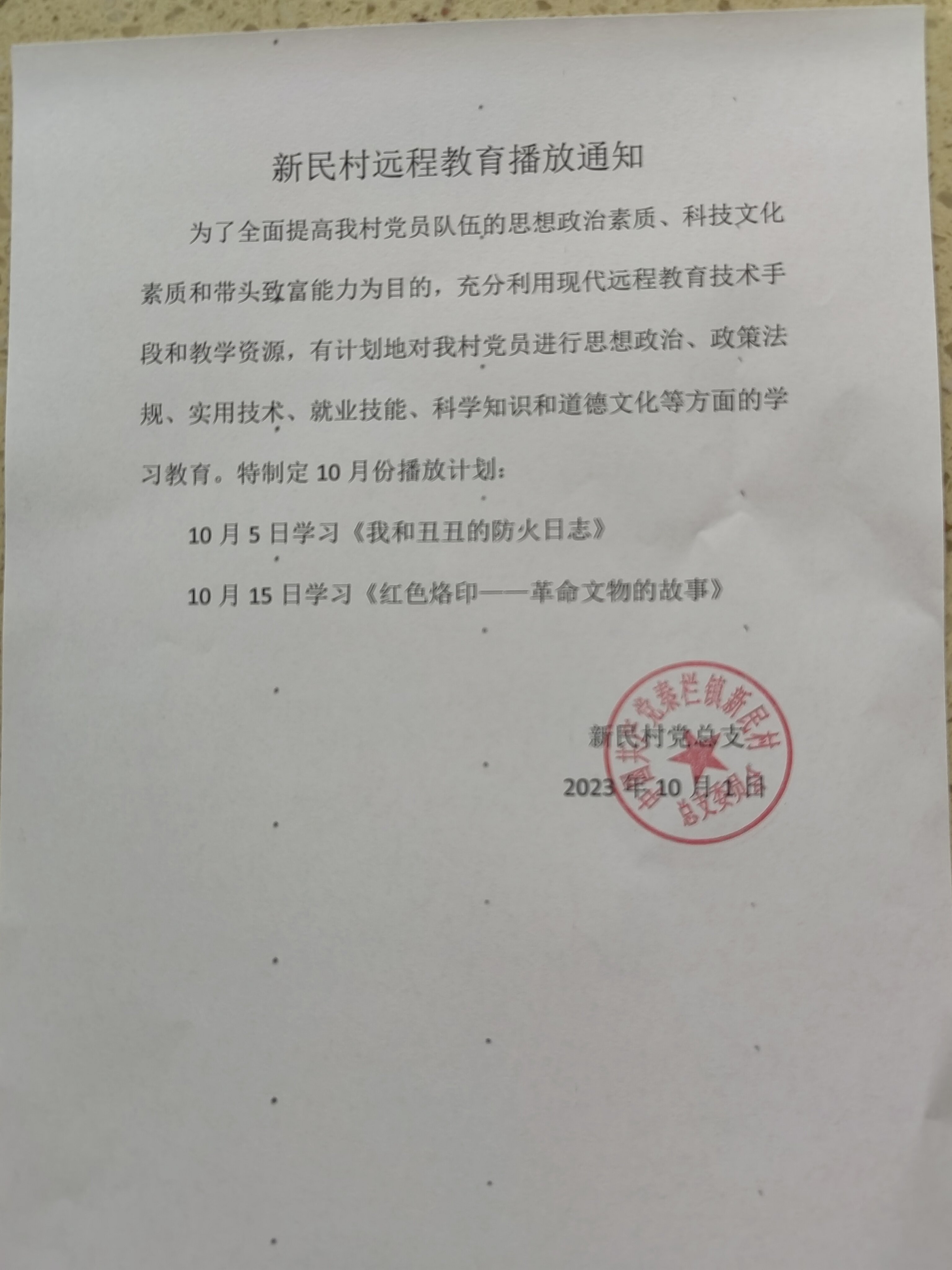 為了全面提高我村黨員隊伍的思想政治素質、科技文化素質和帶頭致富能力為目的,充分利用現代遠程教育技術手段和教學資源,有計劃地對我村黨員進行思想政治、政策法規、實用技術、就業技能、科學知識和道德文化等方面的學習教育。特制定10月份播放計劃:
