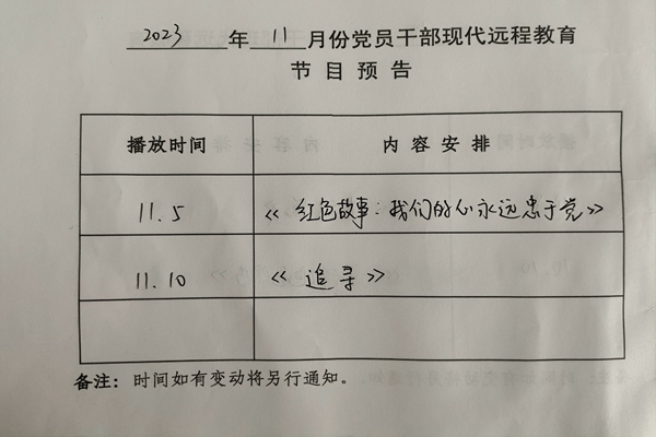 上一篇:吳莊村2023年10月份遠程教育播放計劃[ 10-01 ] 下一篇:吳莊村2023年12月份遠程教育播放計劃[ 12-01 ]