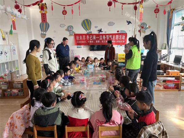 立冬,是我國重要的節氣之一,也是傳統節日之一。為了讓幼兒傳承中華民族的傳統習俗,培養幼兒的動手能力,激發幼兒探索新知的欲望,讓孩子深入了解立冬的由來和風俗習慣,社工站聯合鎮民政辦、未保站、團委、汊澗鎮幼兒園黨支部,開展“秋未盡 冬已來”立冬節氣主題活動。
