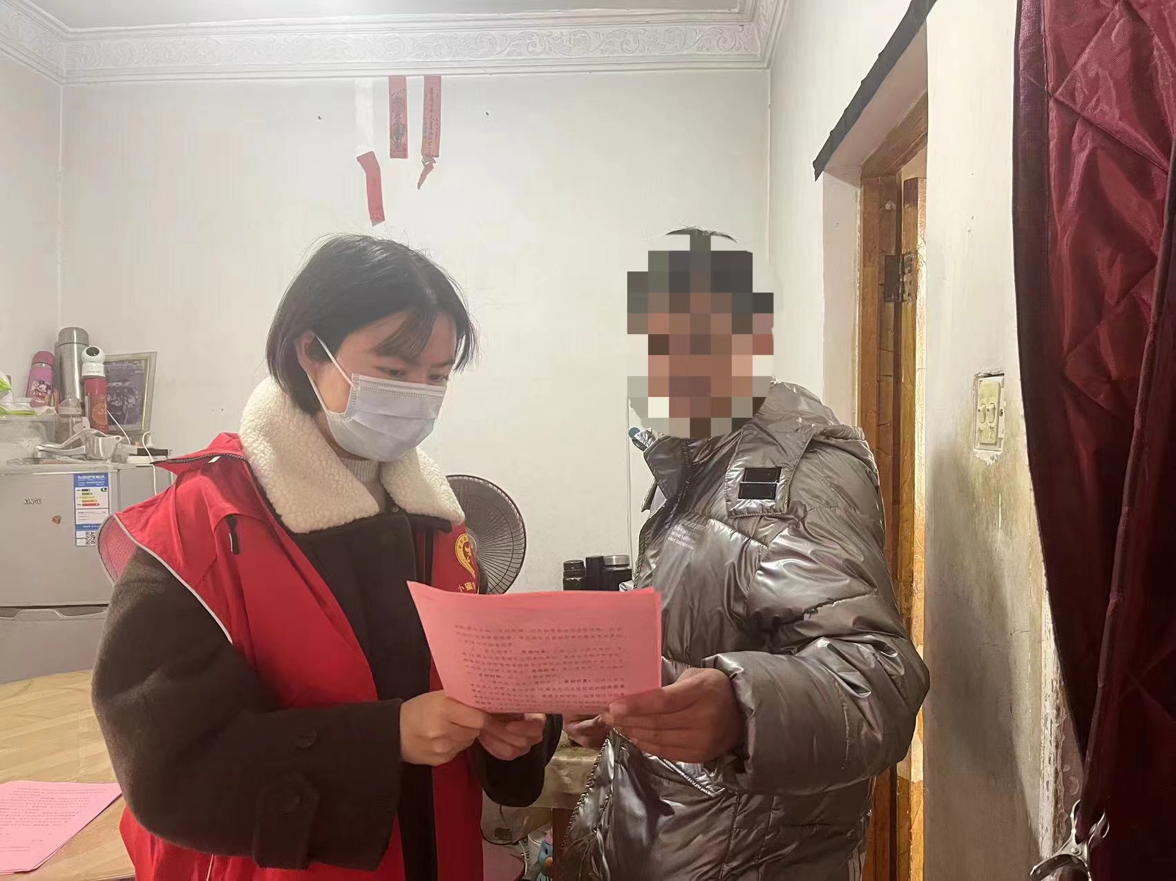 慰問中,志愿者仔細詢問了困境兒童的學習及生活狀況,了解其成長現(xiàn)狀和生活需求,鼓勵孩子勇敢面對困難,積極面對生活的同時也與孩子的監(jiān)護人進行交談,了解其生活中的痛點難點,同時宣傳了反電信詐騙的相關(guān)知識。