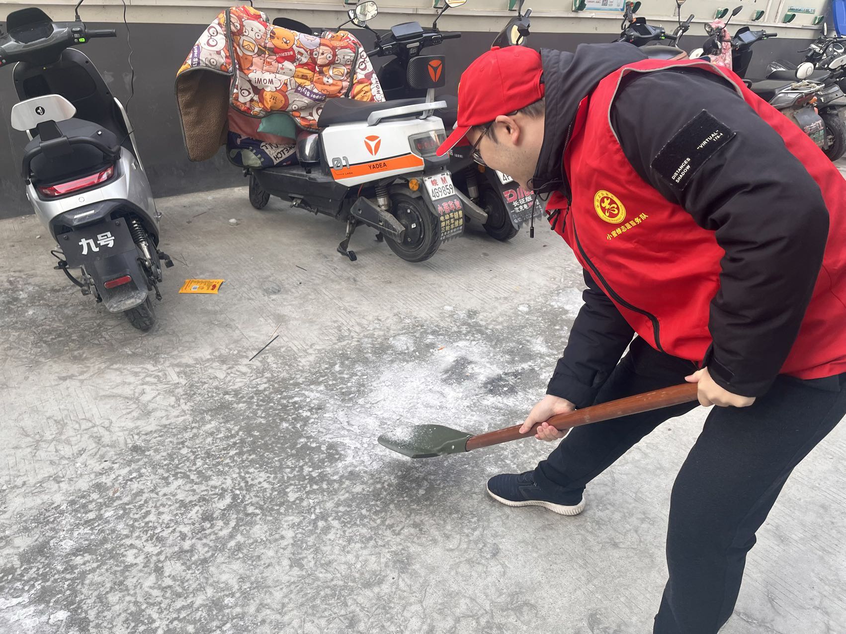 近日氣溫驟降,居民區出現部分路段積冰,老年居民出行受限。凈業社區黨總支立即組織社區黨員,志愿者、網格員,積極參與掃雪除冰志愿服務,保障轄區居民出行安全。