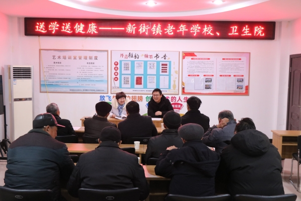 在市教體局、衛健委指導與支持下,12月27日上午,新街鎮老年學校聯合衛生院開展送學送健康活動,進一步推進落實老有所學暖民心行動,增強轄區內老年人的健康意識,樹立科學健康的生活方式。