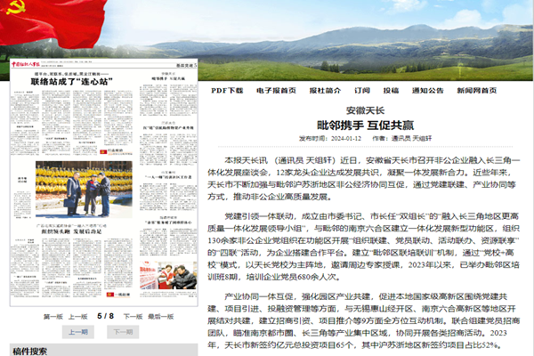 黨建引領一體聯動,成立由市委書記、市長任“雙組長”的“融入長三角地區更高質量一體化發展領導小組”,與毗鄰的南京六合區建立一體化發展新型功能區,組織130余家非公企業黨組織在功能區開展“組織聯建、黨員聯動、活動聯辦、資源聯享”的“四聯”活動,為企業搭建合作平臺。建立“毗鄰區聯培聯訓”機制,通過“黨校+高校”模式,以天長黨校為主陣地,邀請周邊專家授課,2023年以來,已舉辦毗鄰區培訓班8期,培訓企業黨員680余人次。