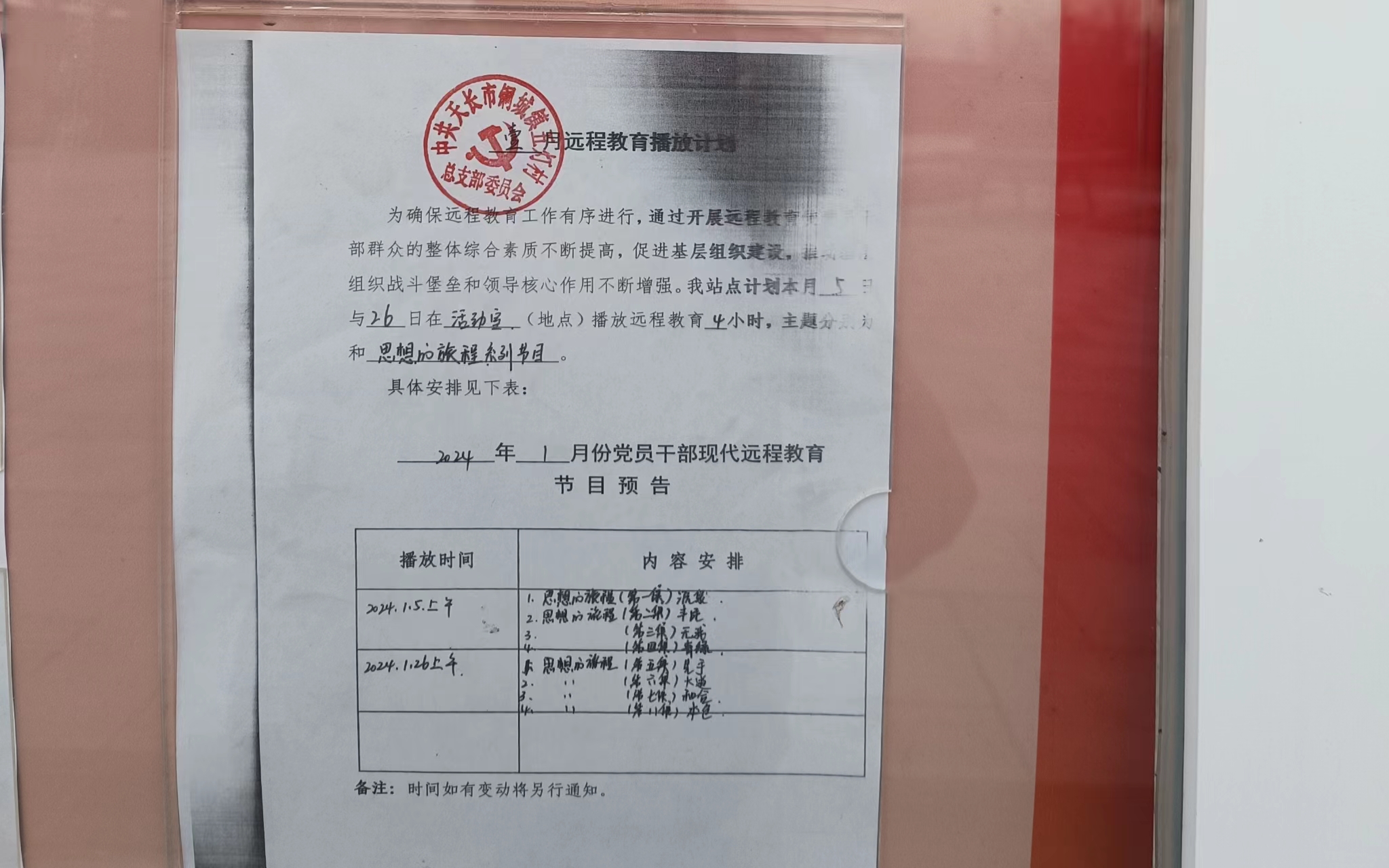 銅城鎮(zhèn)五燈村2024年1月遠(yuǎn)程教育播放計(jì)劃如上圖所示。