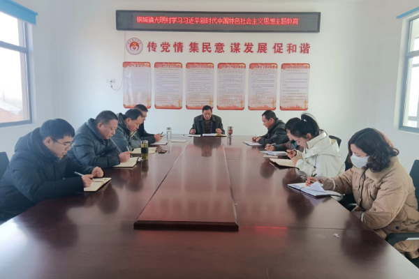 光明村召開全體兩委班子成員學(xué)習(xí)會議,就習(xí)近平新時代中國特色社會主義思想為題舉辦主題學(xué)習(xí)會議,會上由書記帶領(lǐng)村兩委成員學(xué)習(xí)關(guān)于農(nóng)村的相關(guān)內(nèi)容,新的一年積極地學(xué)習(xí),提升村兩委的思想政治內(nèi)涵。