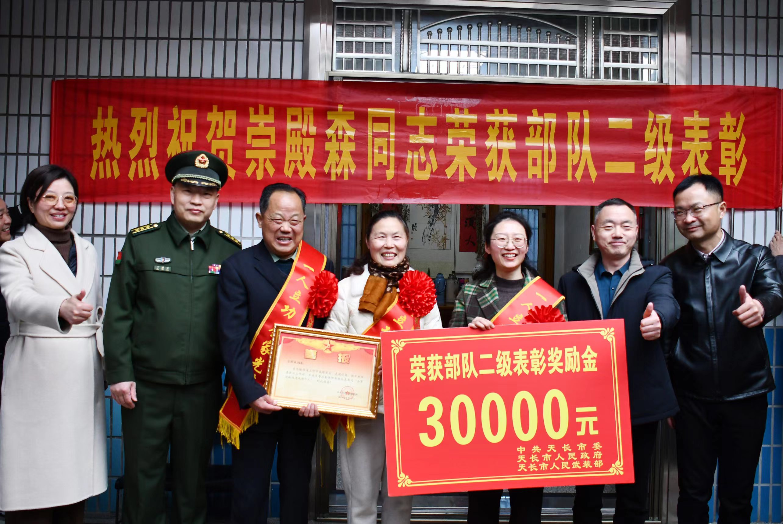 為弘揚新時代擁軍優屬光榮傳統,增強軍人的榮譽感和自豪感,營造尊重關愛功臣模范的濃厚社會氛圍。近日,伴隨著一陣陣喜慶的鑼鼓聲,天長市廣陵街道攜手軍地為轄區因獲評中央軍委后勤保障部“全軍運輸投送先進個人”、二級表彰的現役軍人崇殿森家庭送去喜報和3萬元獎勵金。