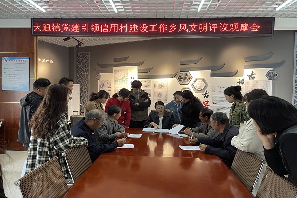 為進一步助推黨建引領信用村建設工作提質增效,4月19日上午,大通鎮在街南村召開黨建引領信用村建設鄉風文明評議觀摩會,現場展示鄉風文明評議的工作流程,鎮組織部門工作人員到會指導,各村(社區)信用村建設業務人員參會。