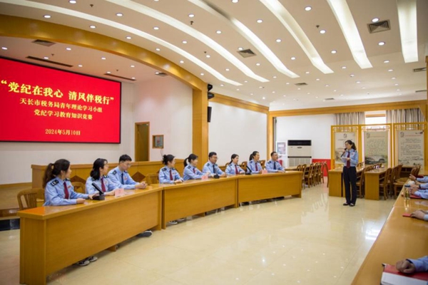 為扎實開展黨紀學習教育,教育引導青年黨員干部學紀、知紀、明紀、守紀,天長市稅務局依托青年理論學習小組開展“5·10我要廉”主題黨日系列活動。