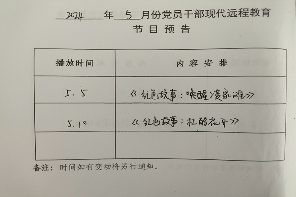 上一篇:吳莊村2024年4月份遠程教育播放計劃[ 04-01 ] 下一篇:吳莊村2024年6月份遠程教育播放計劃[ 05-31 ]