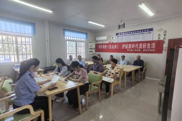 “《民法典》著眼于滿足人民對美好生活的需要,體現了對人民權利的充分保障,被譽為‘新時代人民權利的宣言書’,也是‘社會生活的百科全書’。今年的五月是第四個‘民法典宣傳月’,我們……”在李坡村養老服務站,新街司法所工作人員正在為村民們宣講《民法典》,一件件鮮活的案例,一個個貼近生活的法律知識,讓現場學習氛圍更加濃厚與熱烈。