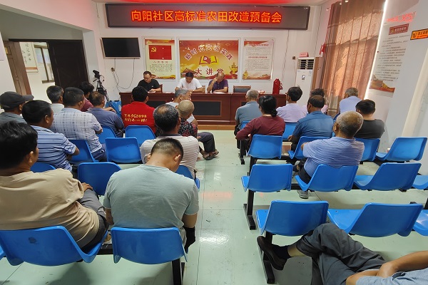 9月6日下午,向陽社區在社區二樓會議室召開高標準農田改造預備會,為群眾代表進行高標準農改造解釋說明工作。