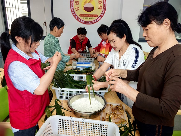 活動現場,鑼鼓喧天、載歌載舞、熱鬧非凡。糯米、粽葉、紅棗等食材整齊地擺放在桌上,社區居民們圍坐在一起,紛紛展示自己的包粽子技巧。除了包粽子,活動現場由志愿者帶領小朋友一起編鴨蛋網、畫彩蛋、繪龍舟,得到現場群眾的一致好評,紛紛給小朋友們點贊,也把現場氣氛推向了高潮。在文藝表演環節,社區居民們自發表演了舞蹈、歌曲、戲曲等節目,贏得了陣陣掌聲。此外,社區工作人員還組織了志愿者,將包好的粽子送到了社區孤寡老人和困難家庭手中,為他們送去了節日的祝福和溫暖。老人們收到粽子后,臉上洋溢著幸福的笑容,紛紛表示感謝社區的關心和關愛。