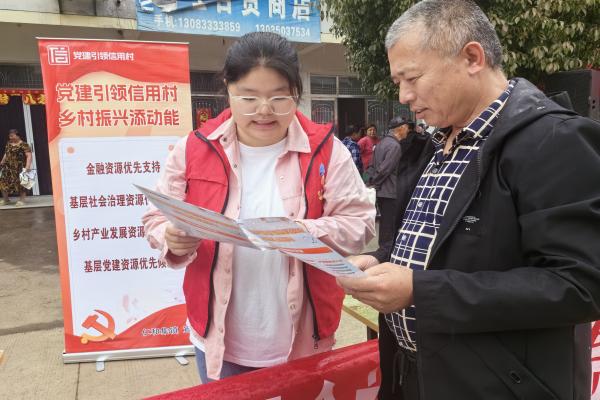 多方聯合“聚動力”,營造濃厚守信氛圍。精細“繪制畫像”。網格黨支部通過入戶走訪與線上溝通了解家庭收入、成員學歷等情況,村黨委積極對接派出所、紀檢等部門,了解農戶違法違紀等情況,動態維護信用數據,為信用主體畫像。全鎮共上傳農戶信息7950條,成功定級A級及以上信用戶6915戶。開展立體宣傳。成立黨建引領信用村宣傳“小分隊”,開展“立體式”黨建引領信用村宣傳,制作“30秒教你成為信用戶”等系列宣傳短視頻3部,向農戶宣講積分作用、禮遇政策及信貸優惠等關鍵信息,視頻轉載量超500,觀看量達13000人次。同時結合“我為群眾辦實事”行動,組織村居網格員、“仁愛之花”黨員志愿金融服務隊走村入戶,持續提升村民對黨建引領信用村建設的知曉率,營造“人人講信用,戶戶爭AAA”的氛圍,2023年以來,累計發放信用村宣傳手冊2000余份。