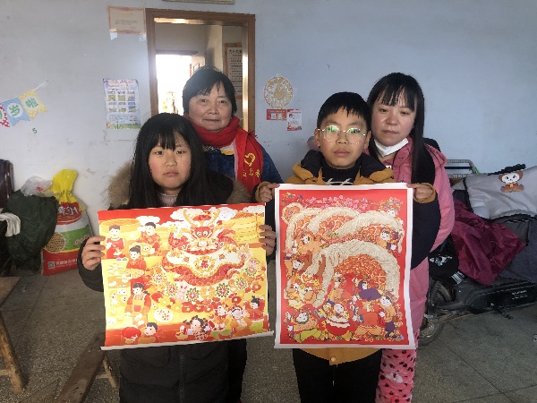 活動中,蘆柴村新時代文明實踐站志愿者和村婦聯(lián)成員向群眾贈送年畫大禮包,帶領村民,特別是少年兒童賞年畫,讓一幅幅充滿年味、飽含溫度、鮮活生動的年畫浸潤人心,讓群眾在過年期間共享年畫盛宴。