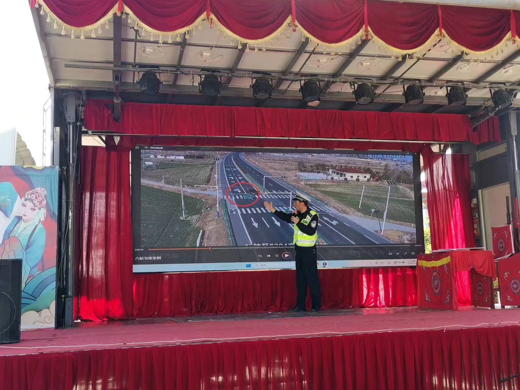推陳出新,宣傳形式更多樣。演出團隊精心編排了以“交通安全”為主題的小品、三句半脫口秀等綜藝節目,讓群眾在觀看演出的同時,對交通安全更入腦入心。在送戲演出過程中邀請農民朋友上臺與交警一起參與如何戴頭盔、酒駕、疲勞駕駛等交通安全模擬活動,讓農民朋友身臨其境地感受到酒駕、疲勞駕駛的可怕后果。同時,鄉村大喇叭也每日播放市公安局交警大隊下發的交通安全知識播報音頻,宣傳相關政策法規,線上線下同頻共振,宣傳形式多樣豐富。