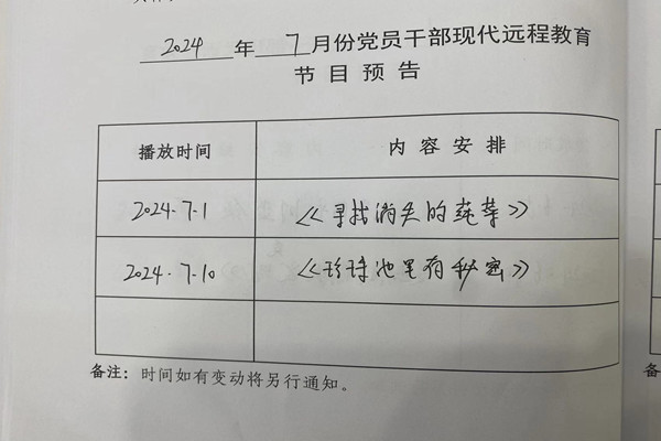 上一篇:雷莊村2024年6月份遠程教育播放計劃[ 06-04 ] 下一篇:雷莊村2024年8月份遠程教育播放計劃[ 08-01 ]