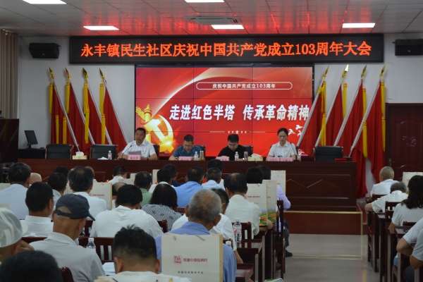 一開始,在半塔鎮奇輝社區召開了慶祝中國共產黨103周年大會。會上,首先,全體黨員在民生社區黨總支副書記的帶領下,面向黨旗重溫入黨誓詞,進一步堅定理想信念,樹牢初心使命。之后,由民生社區黨總支書記進行了上半年度工作匯報、由永豐鎮人大主席上了一節題為《恪守“六大紀律”筑牢思想根基》的專題黨課,教育黨員干部要學紀、知紀、明紀、守紀,激發擔當作為、干事創業的內生動力。最后,分別給“光榮在黨50年”同志和“優秀居民組長”頒獎,通過樹立榜樣,激勵先進,營造了崇尚先進、見賢思齊的濃厚氛圍。