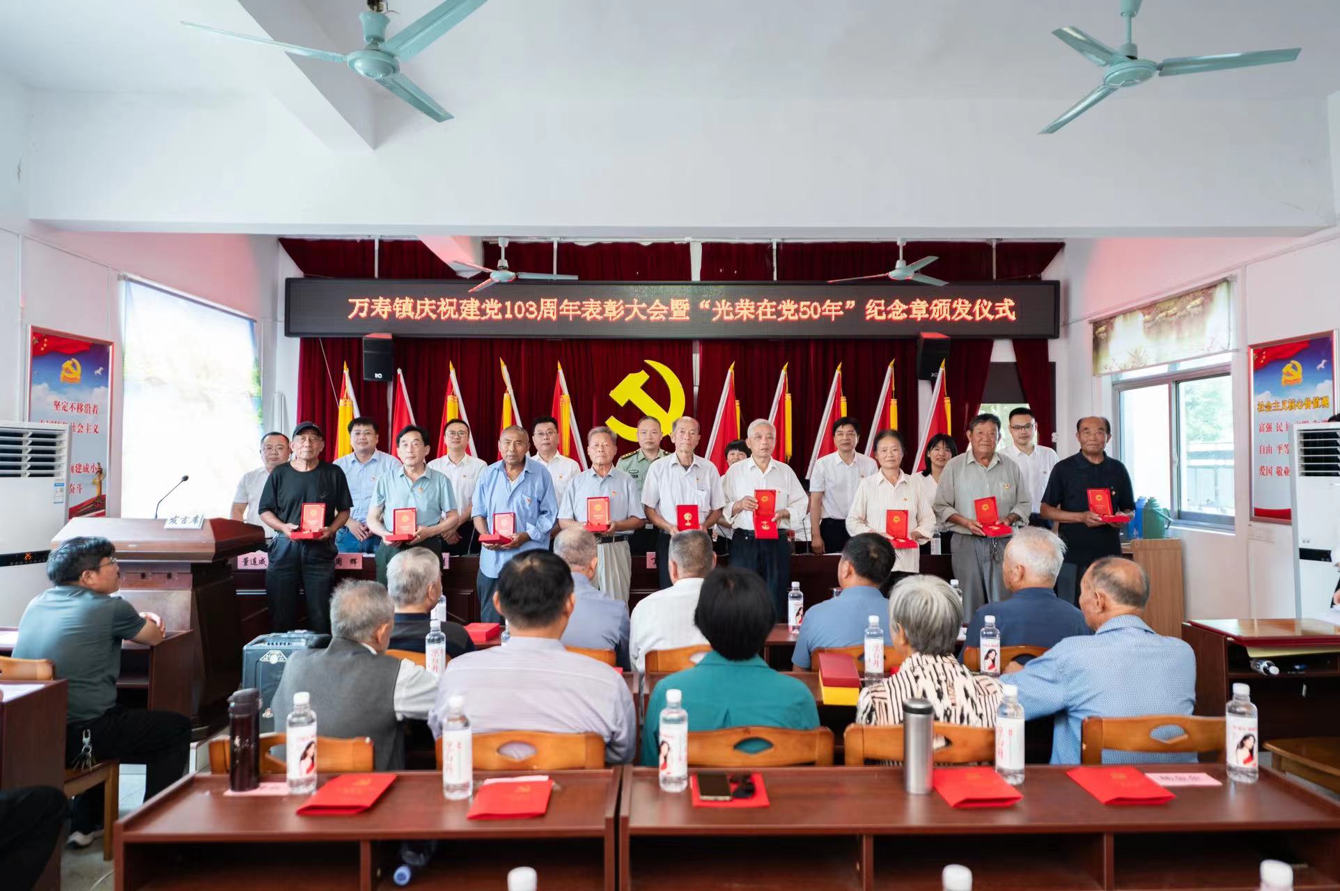 6月30日上午,萬壽鎮隆重召開慶祝建黨103周年表彰大會暨“光榮在黨50年”紀念章頒發儀式,鎮黨委副書記、鎮長苗劍飛主持會議,鎮黨委書記邵啟萍出席會議并講授專題紀律黨課,市委常委、市人武部政委丁建方到會指導,鎮領導班子成員、各村(社區)兩委成員、鎮直機關和非公企業黨組織負責同志、受表彰人員、光榮在黨50年的老黨員以及機關全體黨員同志參加會議。