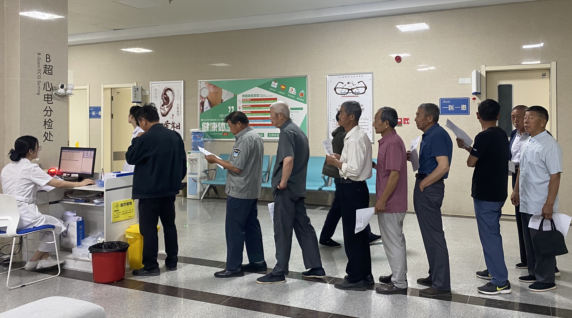 活動開展前期,為了讓轄區黨員都能享受到免費體檢政策,長興社區充分發揮管理優勢,組織社區工作人員兵分幾路,采用走家串戶、電話通知等方式通知黨員體檢。同時詳細講解體檢項目及注意事項,為黨員的健康生活保駕護航。此次體檢項目主要包括量血壓、心電圖、血常規、B超、尿檢、眼科檢查等內容。體檢現場,黨員在社區工作人員的引導下有序排隊,依次體檢,對于行動不便、沒有家人陪伴的黨員,工作人員熱心攙扶陪伴體檢。醫務人員也對每一位前來體檢的黨員耐心、細致服務,并對黨員進行健康知識普及、用藥等方面進行指導。本次體檢活動共有幾十名黨員參加,得到了廣大黨員的肯定和贊揚。