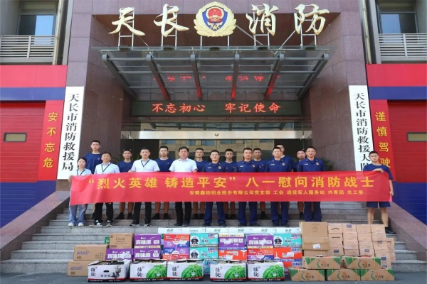 在“八一”建軍節(jié)來(lái)臨之際,鑫鉑股份黨支部副書(shū)記、工會(huì)主席韋金柱率隊(duì)特地來(lái)到天長(zhǎng)市消防救援大隊(duì)開(kāi)展慰問(wèn)活動(dòng),向長(zhǎng)期奮戰(zhàn)在滅火救援一線的消防戰(zhàn)士們致以崇高的敬意,并送上慰問(wèn)品。