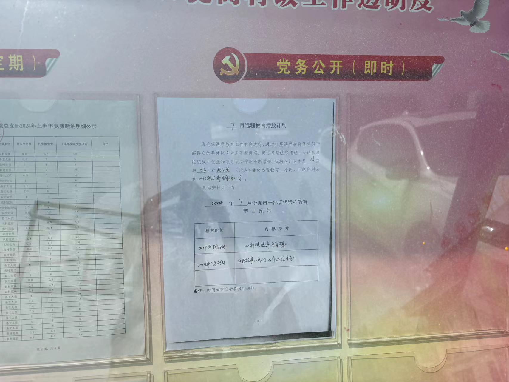 2024年7月份遠程教育播放計劃:定于2024年7月15日和7月26日在村黨員活動室播放遠程教育,內容分別為《打鐵還需自身硬》和《紅色故事:我們的心永遠忠于黨》,請大家屆時前來觀看。