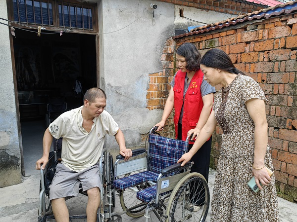2024年8月23日上午,山海社區志愿者上門探望殘疾人,并送上助殘輔助器具,表達政府對殘疾人的關心和愛護。