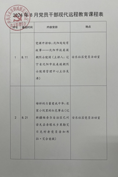 安樂社區8月黨員干部現代遠程教育播放計劃如上圖所示。