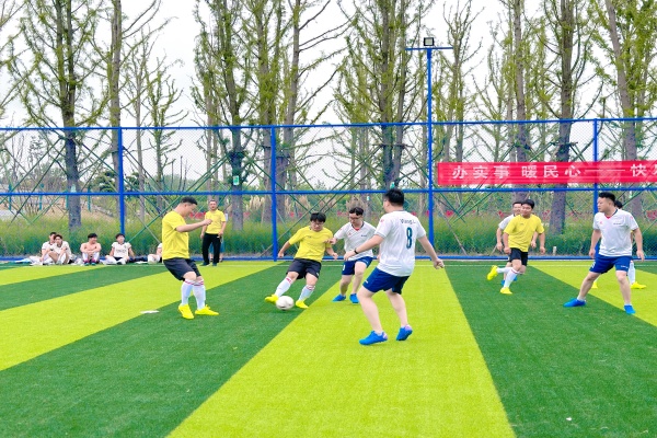 選手們在綠茵場上你追我趕,球員們揮汗如雨,奮力拼搏,運球、傳球、搶斷、射門,動作嫻熟、配合默契,處處洋溢著朝氣與活力。雖然都是足球業余愛好者,但球員們都認真對待,全力以赴。同時,熱烈的比賽氛圍吸引了不少周邊居民和足球愛好者到場觀看喝彩。整個比賽過程中,球員們秉持“友誼第一,比賽第二”的原則,以高尚的體育道德和良好的組織紀律,為居民群眾獻上了一場精彩的比賽。經過一番激烈的體力角逐,比賽終于決出勝負。四支參賽隊伍脫穎而出,分別榮獲一、二、三等獎。