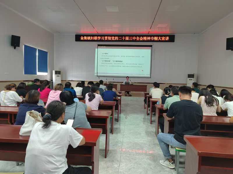 為深入學(xué)習(xí)宣傳貫徹黨的二十屆三中全會精神,持續(xù)推動巾幗大宣講工作走深走實,9月18日,金集鎮(zhèn)婦聯(lián)開展學(xué)習(xí)宣傳貫徹黨的二十屆三中全會精神理論宣講。鎮(zhèn)婦女干部、各村(社區(qū))婦聯(lián)主席參加會議。