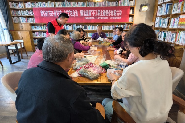 老有所“藝”,敲出“護老”幸福曲。身心不知疲,手有艾錘香。為向長者們傳遞健康養生理念,提高他們的動手動腦能力。鄭集鎮團委在文化站讀書吧開展了“艾在身邊,錘出健康”手工養生錘制作活動。活動伊始,手工老師向參與的青年志愿者和老人介紹了艾草錘的養生功效,示范了艾草錘的使用方法和制作過程,并將含有艾草、印花棉布、麻繩、支撐棍等的材料包分發給大家,讓一老一青合力完成養生錘制作。活動現場,“艾”意流淌,笑語連連。“這個艾草球要捏緊”“線應該從這里穿過去”“大娘,你孫女上幾年級了啊”.......大家或分享彼此手工制作的心得,或聊著家長里短的話題,打破了年齡的界限,沉浸式享受著DIY的樂趣。不一會兒,通過捏、裹、纏、收等步驟,一個個形似話筒、五彩斑斕的養生錘便在手中誕生了。青年志愿者們手握親手制作的艾草錘,輕輕敲打老人們肩頸、腰部、腿部等各個部位,幫助他們放松肌肉。“剛才這個小姑娘幫我敲敲打打,我感覺我背部舒服多了,我以后在家也要堅持使用。”現場的李大媽開心地說道。