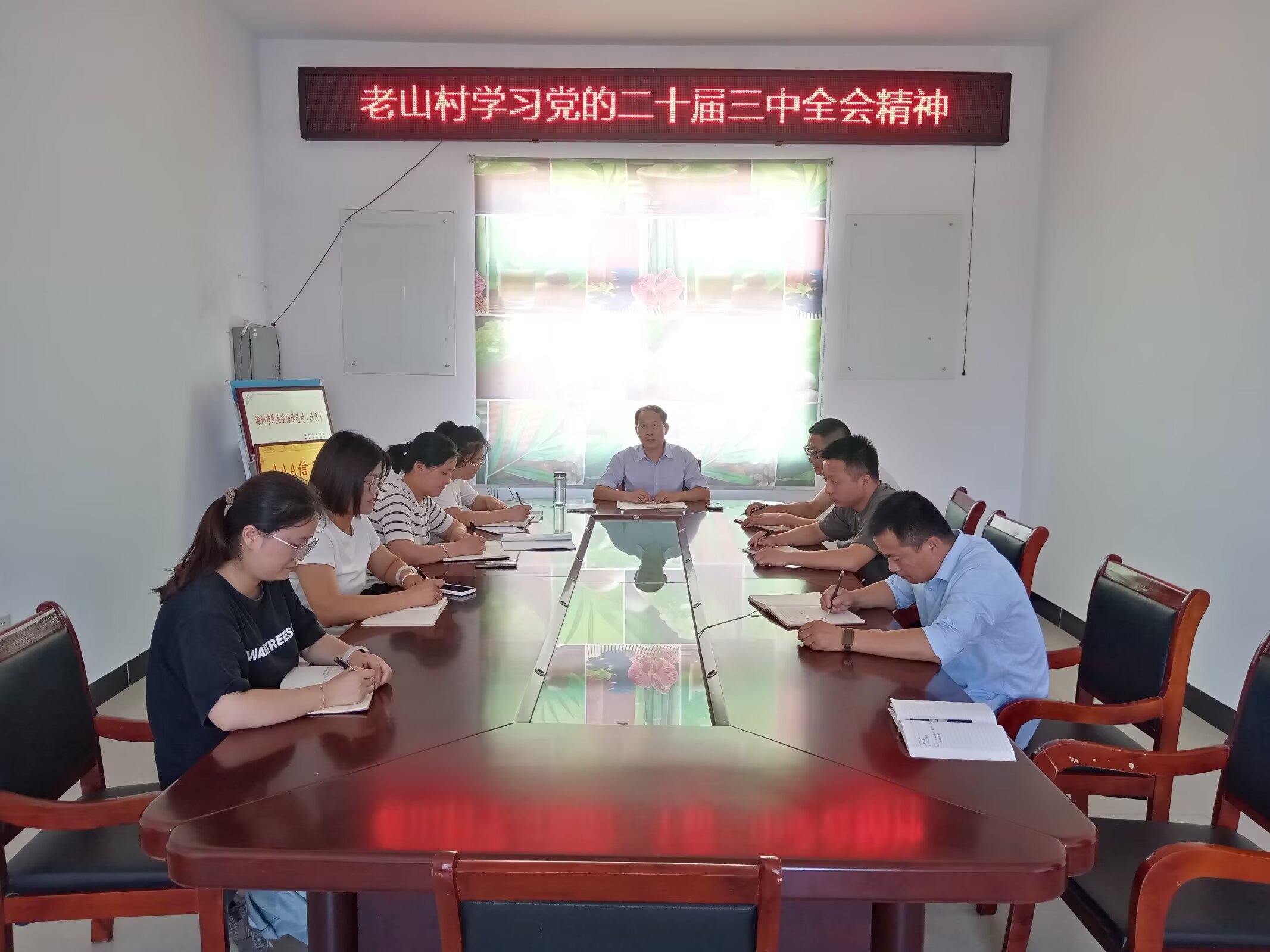 為推動全會精神走到群眾身邊、走進群眾心里,2024年8月6日,老山村黨支部組織村兩委開展了關于學習黨的二十屆三中全會精神的活動。