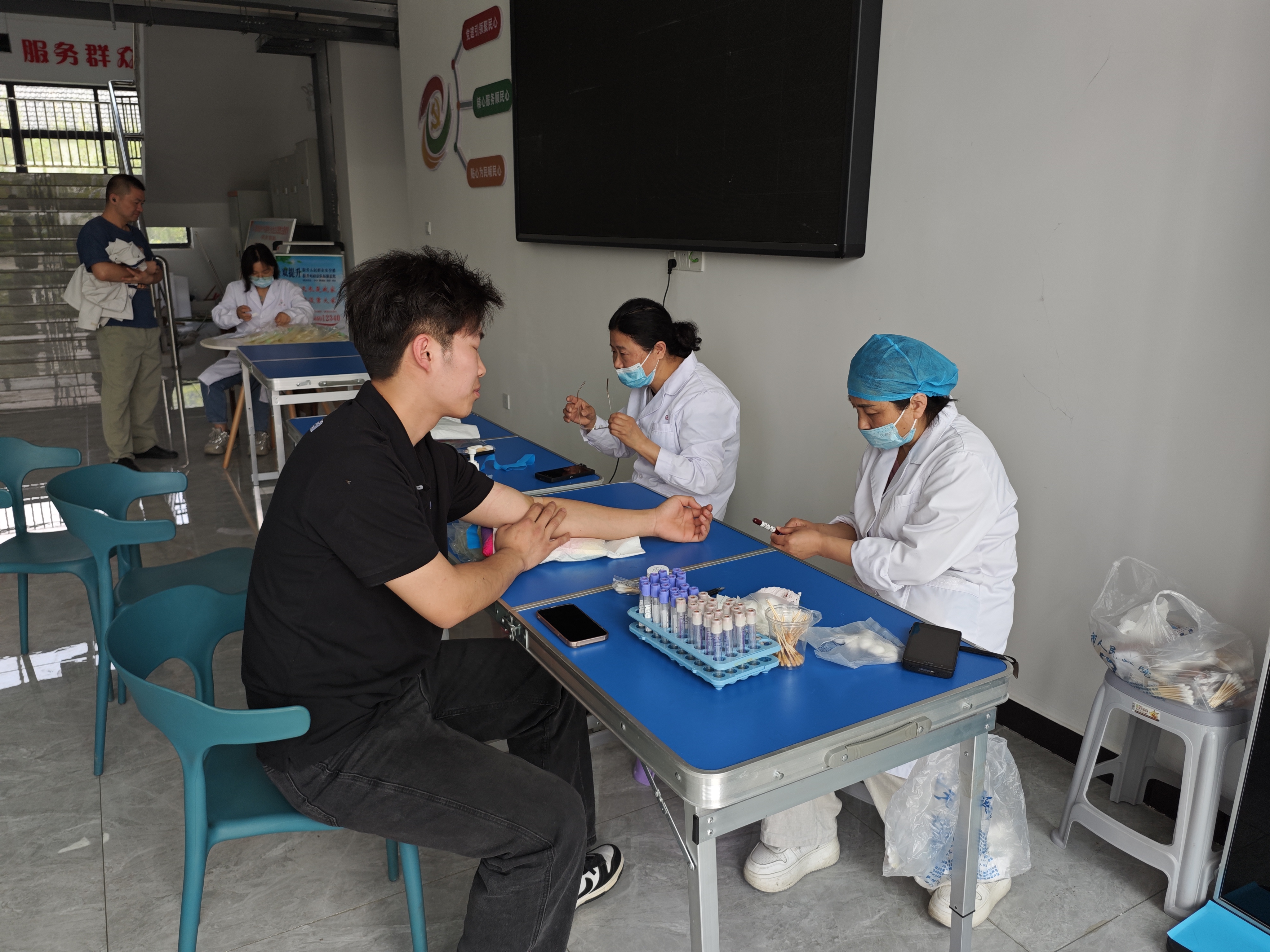 在活動現場,前來獻血的志愿者在工作人員的指引下,按照順序進行了信息登記、血壓測量、血液初篩和血型檢驗,符合獻血條件的人員有序進行采集血液獻血。獻血后,醫護人員細心為捐獻者講解注意事項,為獻血者現場發放了無償獻血證,以鼓勵更多的人參與此項公益事業。