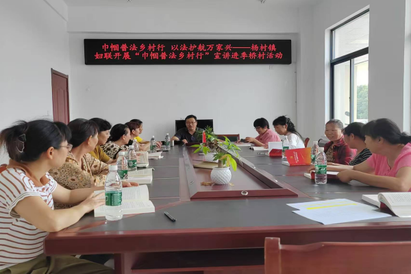為進一步深化法治鄉村建設,增強農村婦女的法治意識和依法維權能力,助力鄉村全面振興。9月20日上午,楊村鎮婦聯在季橋村開展“巾幗普法鄉村行”主題宣講活動,街北婦女小組成員和婦女群眾代表共計20余人參加了活動。