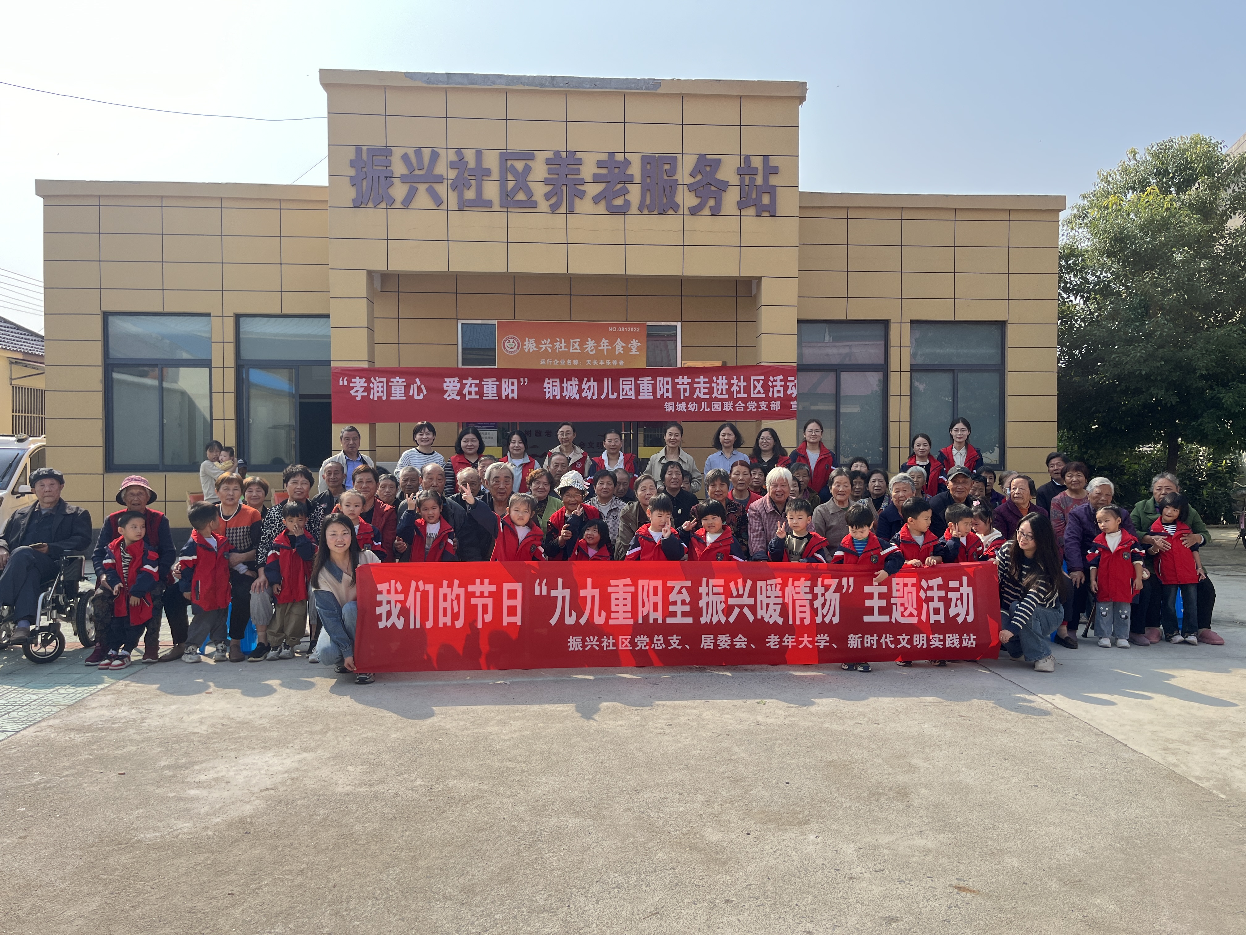 為大力弘揚(yáng)中華民族尊老、敬老、愛老、助老的傳統(tǒng)美德,豐富老年人精神文化生活,提升社區(qū)居民的歸屬感和幸福感。10月11日上午,振興社區(qū)聯(lián)合銅城幼兒園開展“孝潤童心愛在重陽”系列活動(dòng),銅城鎮(zhèn)婦聯(lián)胡主席、新時(shí)代文明實(shí)踐站孫主任、民政辦王主任以及振興社區(qū)70歲以上老人等共同參加了此次活動(dòng)。
